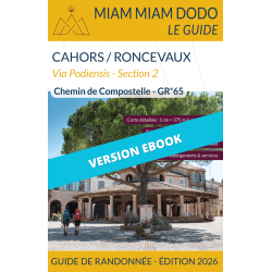 Vous êtes bien sur la version numérique du guide pratique de randonnée Miam Miam Dodo Voie du Puy : de Cahors à Roncevaux (Section 2) - Éd. 2026